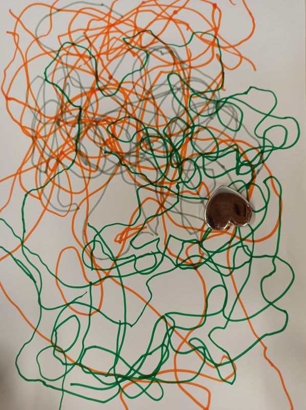 Da questi primi spontanei tentativi, sono uscite certamente alcune difficoltà ad utilizzare entrambe le mani contemporaneamente, ma è emersa anche l’occasione per soffermarci sul concetto di simmetria, offerto dall’esecuzione di un bambino che ha lavorato con entrambe le mani in modo simmetrico.